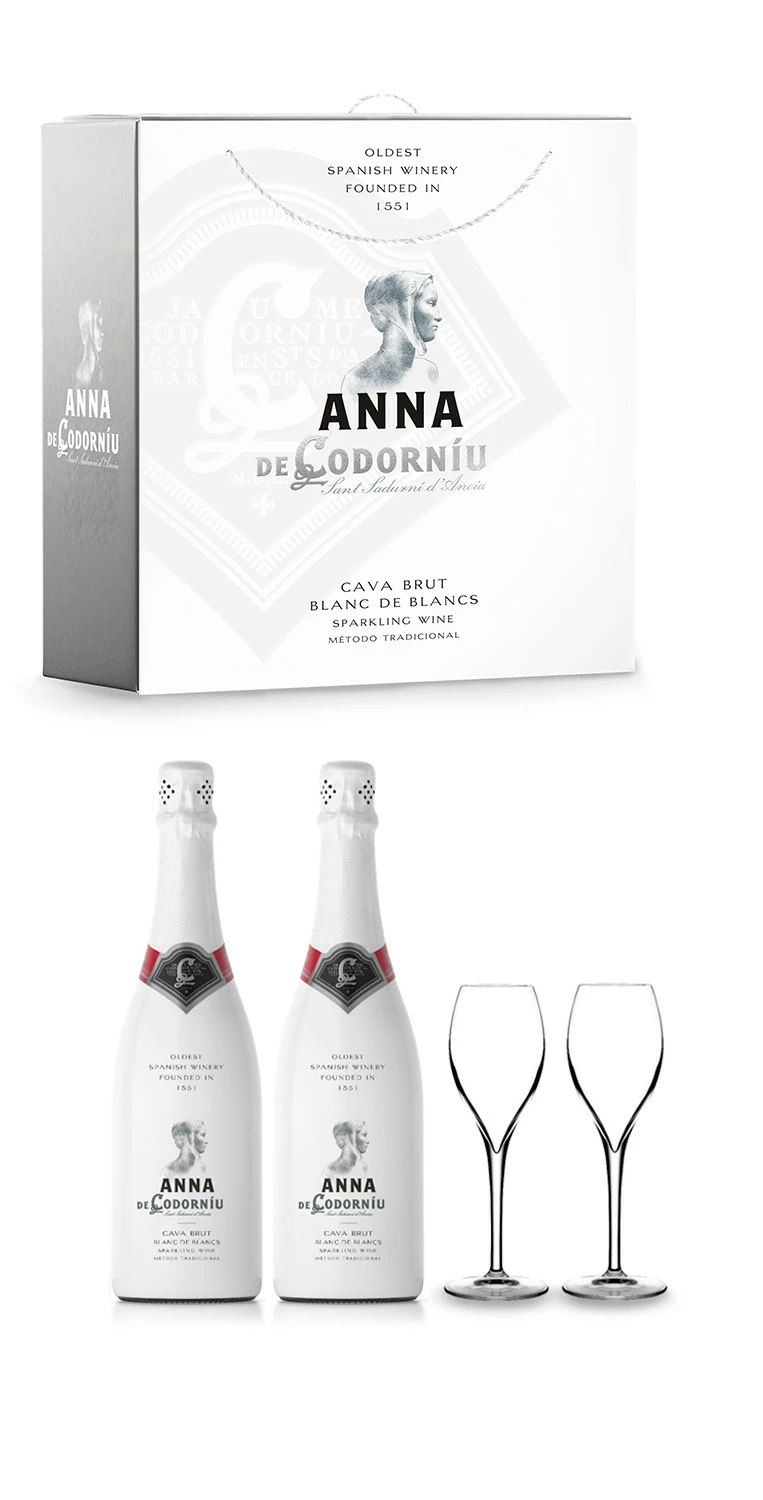 Anna De Codorníu Blanc De Blancs Reserva | Estuche De 2 Botellas + 2 Copas