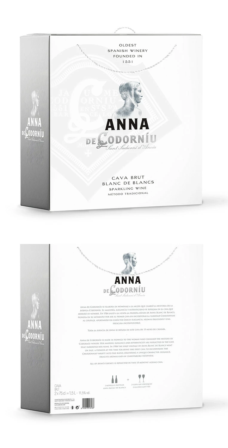 Uno de los grandes blanc de blancs que se elaboran en nuestro país. Anna de Codorníu Blanc de Blancs Reserva está diseñado con un ensamblaje de chardonnay, macabeo, xarel·lo y parellada. Con una crianza mínima de 15 meses en las cavas de la bodega, es un cava gastronómico que va bien acompañando una comida de principio a fin. Ahora, en un elegante estuche de 2 botellas más 2 copas.