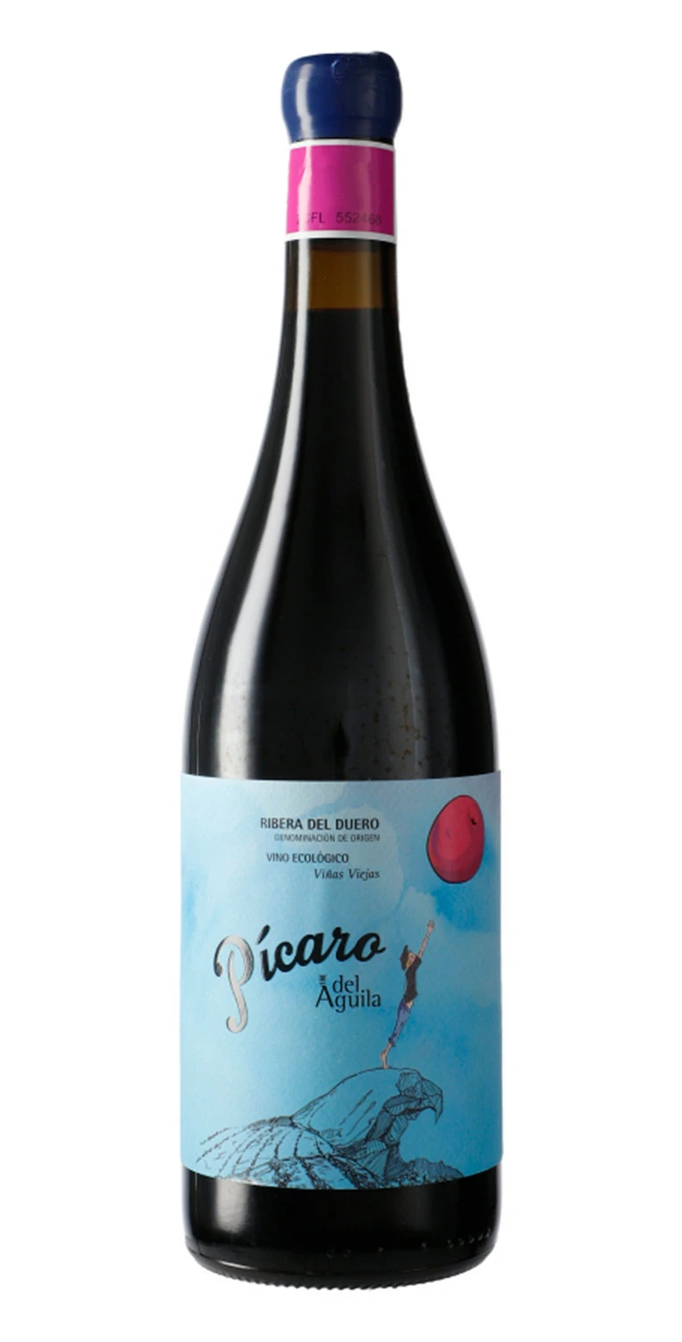 Pícaro del Águila 2021 es un vino tinto excepcional procedente de viñas viejas de La Aguilera cultivadas, a 860 metros de altura sobre el nivel del mar, sobre suelos de arcillas rojas con guijarros. La tempranillo domina un coupage completado con garnacha, bobal y tempranillo gris, vinificadas conjuntamente, dando como resultado un tinto que refleja la pura expresión de la Ribera del Duero, un perfecto equilibrio entre la fruta, la madera y la acidez.