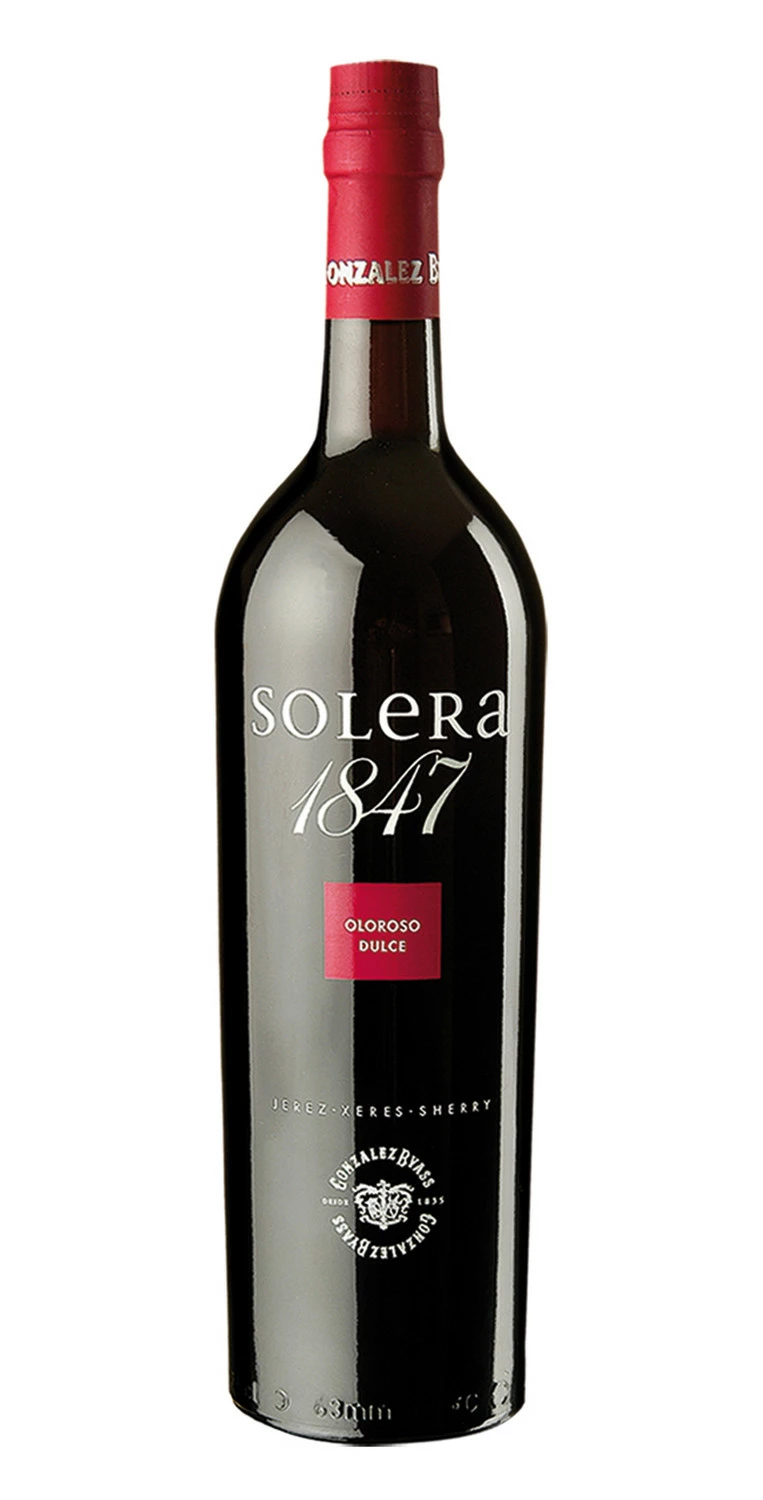 Solera 1847 Cream es un vino oloroso dulce elaborado magistralmente por González Byass, a partir de una selección de sus mejores uvas de palomino fino y Pedro Ximénez. Premiado con sendas medallas de oro en el Concurso de Vinhos do Brasil y en los Sakura Japan Women’s Wine Awards 2014.