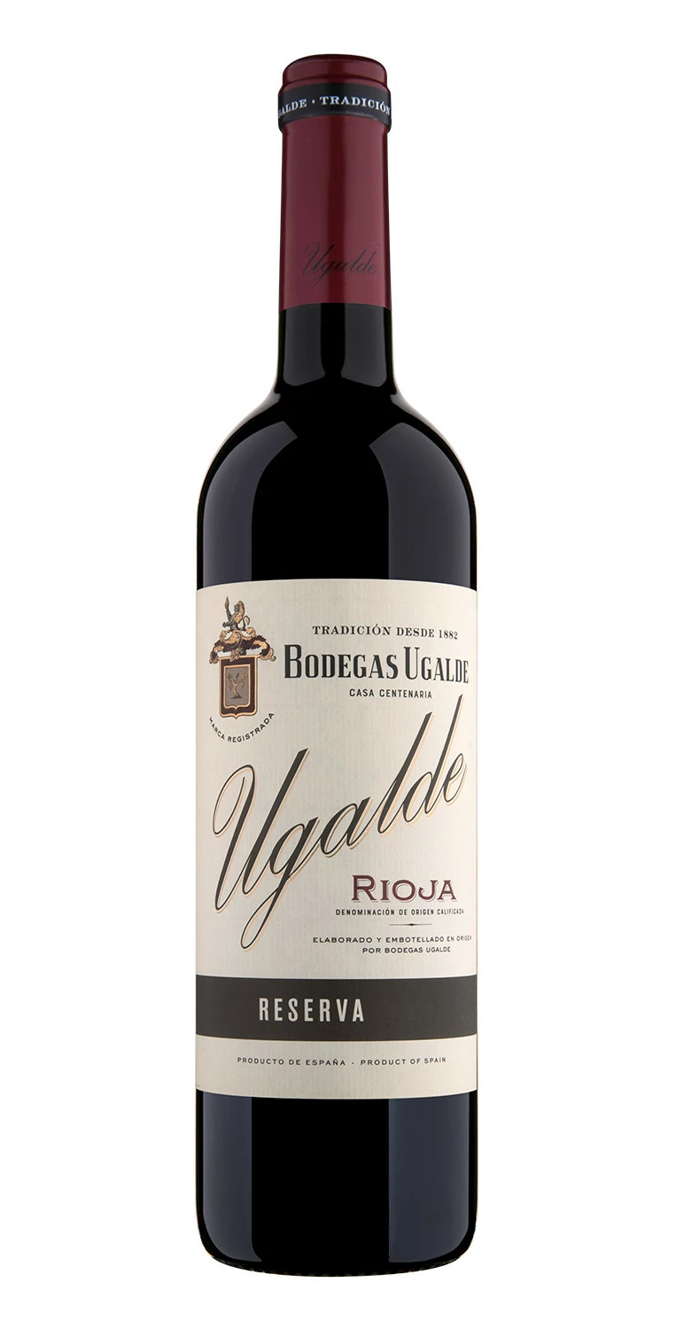 Bodegas Ugalde, firma centenaria fundada en Haro, forma parte hoy del pujante grupo Príncipe de Viana, y sus vinos fusionan tradición y vanguardia. Seleccionamos Ugalde Reserva 2018, elaborado mediante un ensamblaje típico riojano: tempranillo (mayoritaria), graciano y mazuelo.